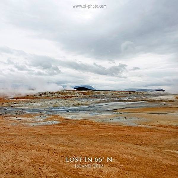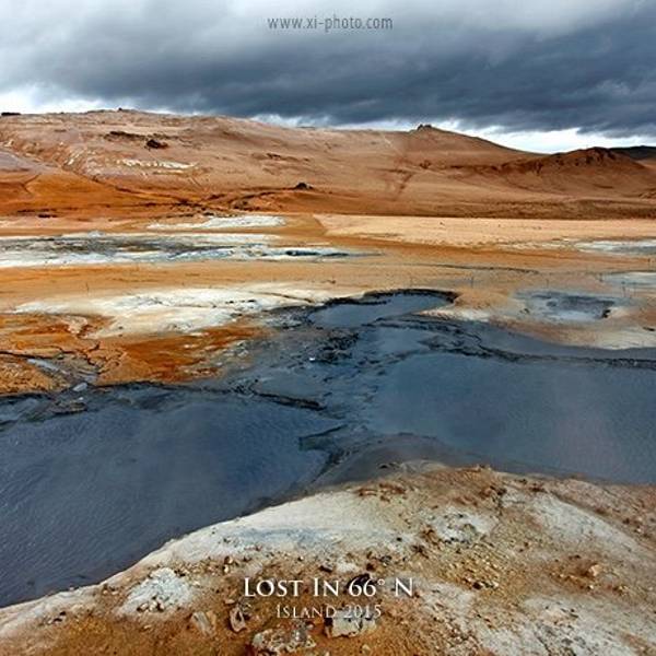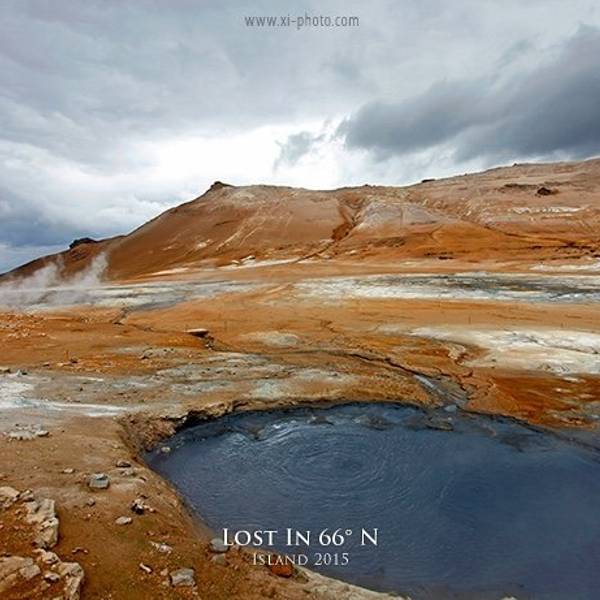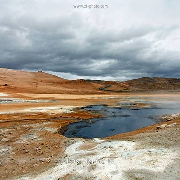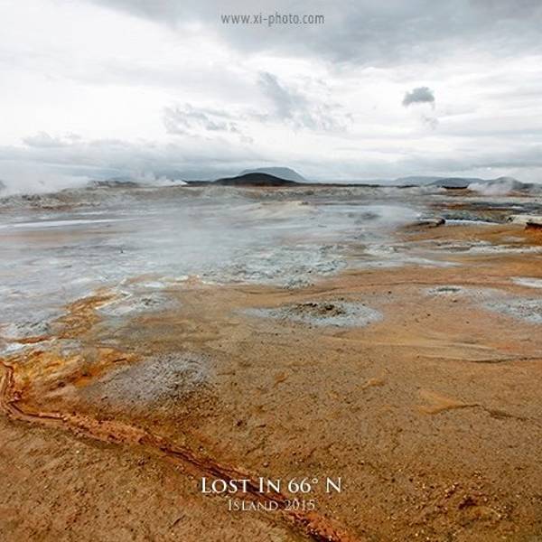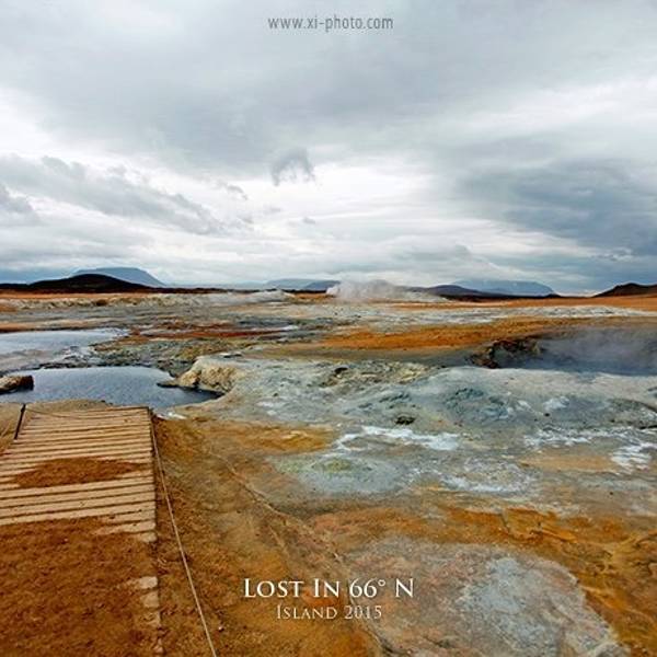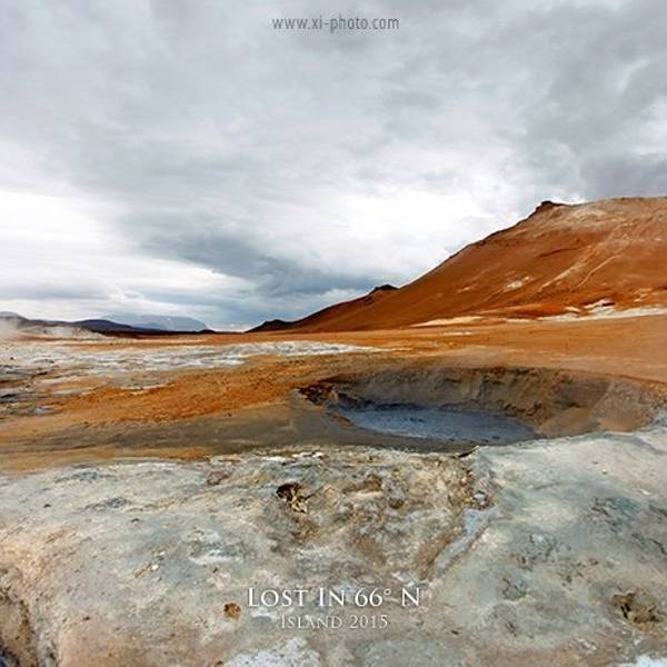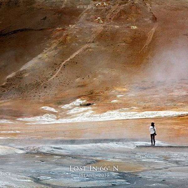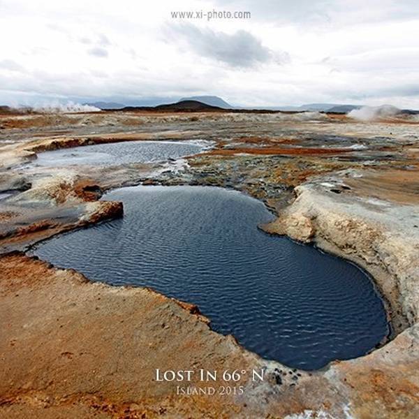 继续疾行,我们来到了纳马和惠利火山区(Namafjall & Hverir )。 纳马和惠利火山区(Namafjall & Hverir ),就在一号公路附近。纳马是一座火山,遍布在山脊上的蒸汽口昭示着它无与伦比的活跃。纳马火山脚下,则是惠利地热,到处都是喷气坑和硫质喷气孔。入口处的指示牌提示着这儿的危险,一定一定要be careful。 真的,亲眼见到的时候,还是无法相信这是地球能存在的景象。 与其说这儿像外星,不如说,更像地狱!白色烟雾不断地从橙黄色的大地喷薄涌出,沸腾的泥浆在遍布的大大小小的泥坑中狰狞地冒着泡,大地被蚀成骇人的斑斑驳驳。 站在这儿,深深感受到源于大地深处的狂暴躁动。 那是来自地狱的声音吗?我们在步道上小心翼翼地走着,可不想真的踏上了地狱。直到见到这个依然也在沸腾冒泡的泥坑。 它心形的形状,在这个让人极度惴惴其栗的土地上,多少有些不太和谐。游走在地狱的边缘,再一次震慑于大自然的无穷威力。 从来没有什么人定胜天,人只有顺应自然,才能更好地立足于天地之间!