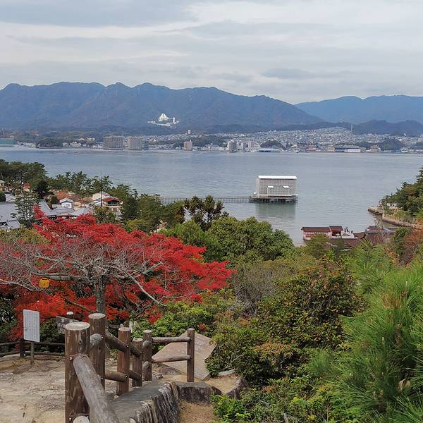 红叶谷公园所在的弥山是作为宫岛岛屿神灵居住之地而自古被人崇拜的灵山。 与海拔对应,生长着多种多样的植物。红叶谷公园约有200棵枫树,这个时候过来枫树有的还没变红,有的已经落叶 满地,公园呈现由绿到黄各种渐变色。日本人讲究把大自然的产出按照时令作为食材,制成红枫形状的“红叶馒头”正是当季最适合想用的。昭和天皇皇太子殿下展望台同视角观景台,喝抹茶品尝时令的“红叶馒头”应应景,装装格调的事有时候我也会做。枫叶馒头形如其名,是枫叶形状的糕点,里面是豆沙馅,是广岛最具代表性的特产。