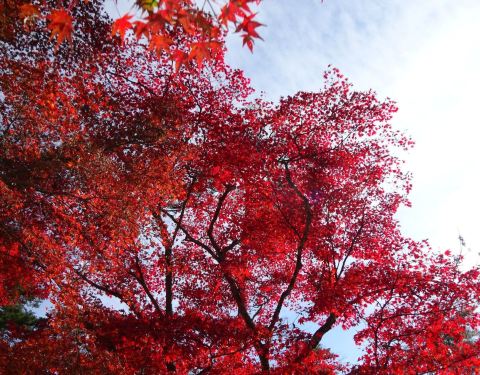 日本广岛市的红叶谷公园沿着红叶谷河拓展,种植着700多株红叶树,一眼望去尽是红枫交织成的如燃烧般鲜明的景致,美不胜收。是日本三大红叶欣赏地之一。