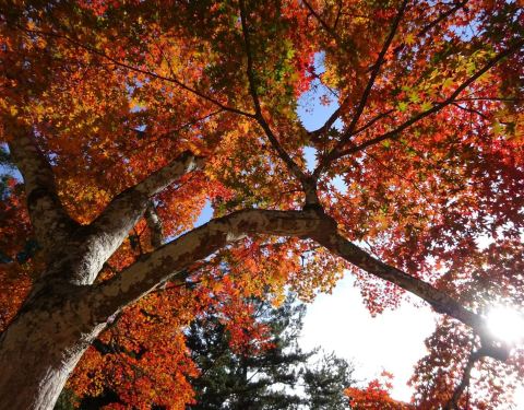 红叶谷公园,秋天是满满的红叶,中午时分阳光洒落时特别美