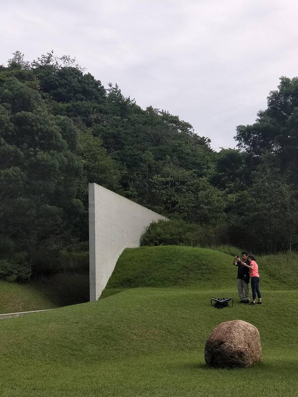 因为李禹焕是韩国人,所以这个景点明显成为了韩国游客的打卡之地,也会特别准备韩语的介绍资料虽然是美术馆,但其实李禹焕的作品只有寥寥几幅,而且并未引起我的共鸣,倒是安藤忠雄设计的建筑本身有些“喧宾夺主”的味道了,1030的门票感觉有很大一部分都是因为建筑本身的价值。