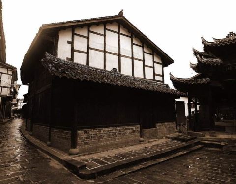 ...道显得很破旧,古老的石板路两边林立的老房子,以及雕刻着精美图案的高大木结构建筑,使古镇风貌依然