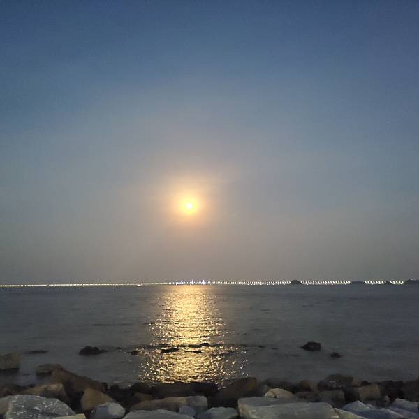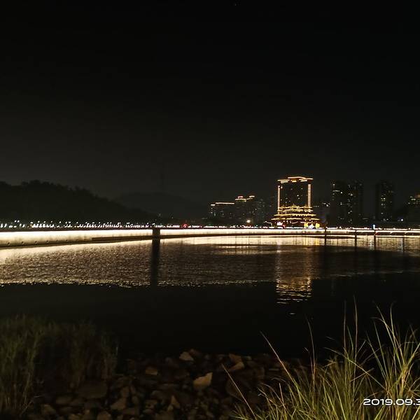 不掏门票也可以玩的很开心的景点(晚上哦)海边,小岛,日月贝,夜晚,灯光,你不须要门票进入观影,只在影院外,这里的美景就令你陶醉。