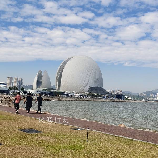 如果从空中俯瞰,野狸岛就像是一只靴子,日月贝位于靴筒,其余部分均为公园,环岛则修有滨海绿道,是...第一个目标就是有“日月贝”之称的珠海大剧院。汽车在高速公路上飞驰,离海越来越近,感觉天空也变得更加通透。当驶入情侣路时,浩瀚的大海已经扑面而来,忍不住打开车窗,让海风沐浴整个汽车,这种略带咸味的空...第一个目标就是有“日月贝”之称的珠海大剧院。汽车在高速公路上飞驰,离海越来越近,感觉天空也变得更加通透。当驶入情侣路时,浩瀚的大海已经扑面而来,忍不住打开车窗,让海风沐浴整个汽车,这种略带咸味的空气让人沉醉。日月贝近观珠海大剧院位于野狸岛上,是珠海境内离陆地最近的海岛。野狸岛传说是由野狸化成,在很久很久以前,狮子和野狸在风波山争抢村民的祭肉,日夜厮打,村民在坟前设置符咒,方得安宁。后来,狮子死后化为岸边的狮山,野狸则化作野狸山伏卧在海面,与狮子对峙。日月贝远观很快,就看到珠海大剧院白色的身影,在碧海蓝天的映衬下,显得格外美丽。这座建筑是2014年底建成,其主体形似两个白色的贝壳,一大一小相对而立,所以,人们都喜欢称它为“日月贝”。日月贝远观野狸岛修有多座桥梁,交通便利。一上岛,我们直奔日月贝,旁边是一个购物中心,建有地下停车场,可以把车停在这里。日月贝近观从停车场上来,来到一个大广场,日月贝就矗立在眼前,通体洁白,无论从哪个角度看过去,都是那么的美。人们的手机已经停不下来,不停地拍拍拍,生怕漏掉了某个精彩瞬间。日月贝近观日月贝的设计灵感来源于世界名画“维纳斯的诞生”,堪称完美无瑕。这里除了剧院,还有博物馆等展厅,可以说是珠海的文化中心,据说夜景也非常美。这次自驾游只规划了一天时间,深度体验只能等以后再安排。野狸岛绿道如果从空中俯瞰,野狸岛就像是一只靴子,日月贝位于靴筒,其余部分均为公园,环岛则修有滨海绿道,是徒步骑行的好地方。我们花15元坐环保观光车沿野狸岛转了一圈,一路上椰风阵阵,蓝天白云,不时还能看到远处的港珠澳大桥。野狸岛海滨风光野狸岛的中间就是野狸山,有数条登山步道可直达山顶,站在山顶之上,极目远眺,风光无限,让人流连忘返。得月舫野狸岛岸边停着一艘大船,十分抢眼,形似古代的画舫,和现代感十足的日月贝刚好形成巨大的反差。这艘大船其实是一家酒楼,名叫“得月舫”,可以说是珠海的老字号了。广东地区的早市一般持续到下午2点,在这里喝了顿早茶,其实是解决了午餐。毕竟是家老店,装修可能略显陈旧,但就餐环境还是挺干净的,出品也不错,值得推荐。 展开