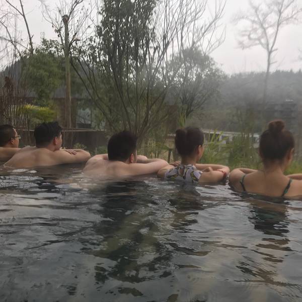 去的时候下雨 但是很适合泡温泉 服务态度也很不错 环境也还可以
