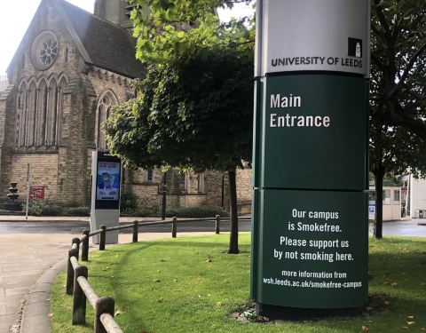 利兹大学是英国以及世界著名大学。利兹大学的教学楼帕金森楼是利兹市著名的地标建筑,上面还有钟表指示时间。每到中午会有大量游客和市民聚集一起吃饭拍照留念