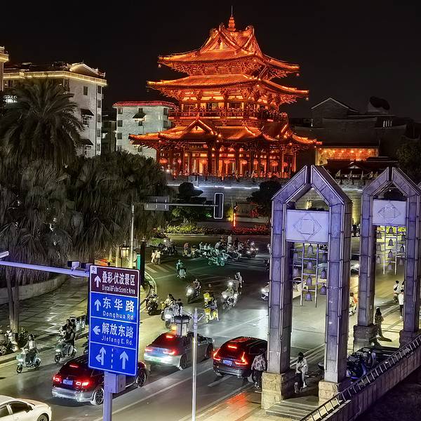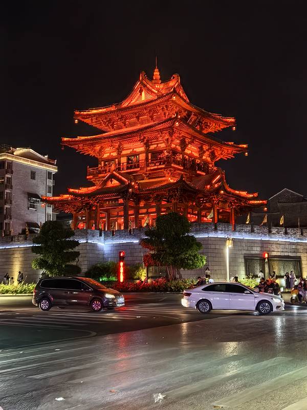本来是想去看日月双塔,结果方向搞返,直接来到了逍遥楼,夜景很好看…… 第二天起早又去了一趟,看看日景(没登楼)。逍遥楼的另一出口就是状元廊,还连着东西巷