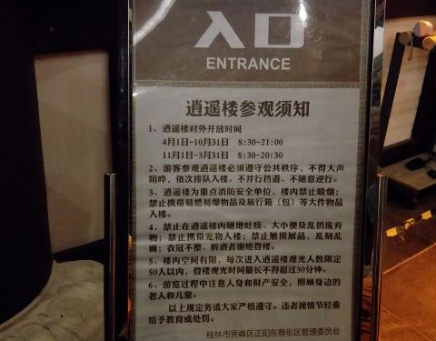 逍遥楼遗址位于桂林东西巷景区。晚上上楼顶看解放桥夜景很美。 对外开放时间:8:30—21:00逍遥楼遗址位于桂林东西巷景区。 对外开放时间:8:30—21:00。 是几经重建的唐宋风格建筑 二层三檐阁楼式景观建筑,简洁流畅,通透古雅。登楼可鸟砍漓水诸峰。晚上上楼顶看解放桥夜景很美。