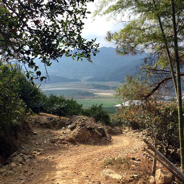 这不就是杨家溪供游客们看看的一小片地吗?收18元门票,前面是频繁出镜的一排老榕树,后面的小树林大约就是枫树了,不过冬季都秃了。图四是山上的桔园,一般游客也不过去。榕树下老人牵牛加上生烟是付费演出,下...