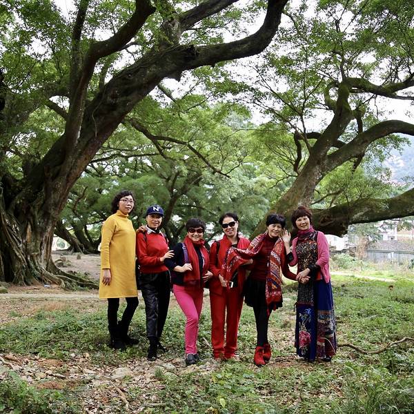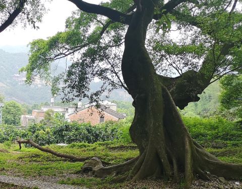 榕枫公园地处福建省霞浦县牙城镇渡头村,是杨家溪的一个重要景点。公园主要是由大片的枫树林和古榕树群所组成的。这里的古榕树数量多、舒展壮观、枝繁叶茂、交柯成排,特别古朴和怪异。其中最大的一棵小叶红皮榕,高29米、冠幅直径51米,冠幅占地3.06亩,树干为椭圆形,长轴胸径5.1米、短轴胸径3.6米,周长12.6米,因该榕树干中空,有7个洞口可相通。初夏的这里,人们在翠绿阡陌中来回穿梭,拍摆,吸氧,充满活力。美中遗憾是这里成了摄影师打卡点,千年榕树下老翁放牛老耋挑担,一群当地人拼命点柴扇风似乎吹烟袅袅。只是我的理解艺术来源生活而高于生活,这样做作蔚然成风有意思么?大自然原本就那么美,你来不来她永远这样静谧。