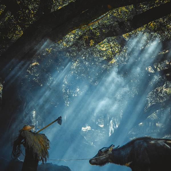 早饭吃好8点就赶去下个景点~ 杨家溪 榕枫公园[老农牧牛] 这里的老农和牛是全职工作的,他们每天就是在这里走来走去,摆姿势给游客摄影。要看他们表演一次是需要支付额外费用的,如果没有其他旅行团付钱请模特的话,就散客一人20块。 农民收了钱以后,就有人来放烟,老农和老妇人就牵着牛出来走几圈~ 小林说,这个地方到秋天很美,因为这个公园里面有枫树,全红了 这地方特别小,门票20块,要拍照再加20~不放烟,就是颗树,放了烟雾后,光线的道道才会出现。 一般日出后到10点左右,都可以拍,再晚光线就是从头顶下来,不好看了` 看我下图,已经是近10点的光线了有个散客团交了钱,我就顺便拍了2张