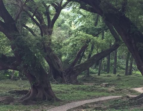 收18元门票,前面是频繁出镜的一排老榕树,后面的小树林大约就是枫树了,不过冬季都秃了