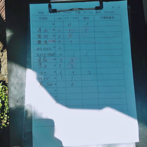 这家店的特色是牛肉饭,只在中午提供的(午餐时间仅为中午的11:30-13:30)。到了这里以后,需要先在门口的纸上写上自己的名字用来排队,等开门后店主会根据姓名的顺序请顾客们进店用餐。大家最好用英语或者同音的平假名来书写自己的名字,因为店主不懂中文。如果想要尝试这个美味,要尽早过去排队,因为牛肉饭每天是限量供应的。
