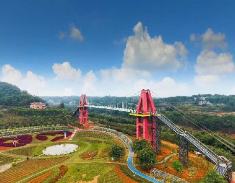 居然还是4A的景点,门票本来是60,买的半价票,里面有些花,景区不算很大,玻璃吊桥票单独买60...蜀南花海耍了半天,以前没有听过这个地方。居然还是4A的景点,门票本来是60,买的半价票,里面有些花,景区不算很大,玻璃吊桥票单独买60,有点贵,吊桥不高,也不长,不太划算。