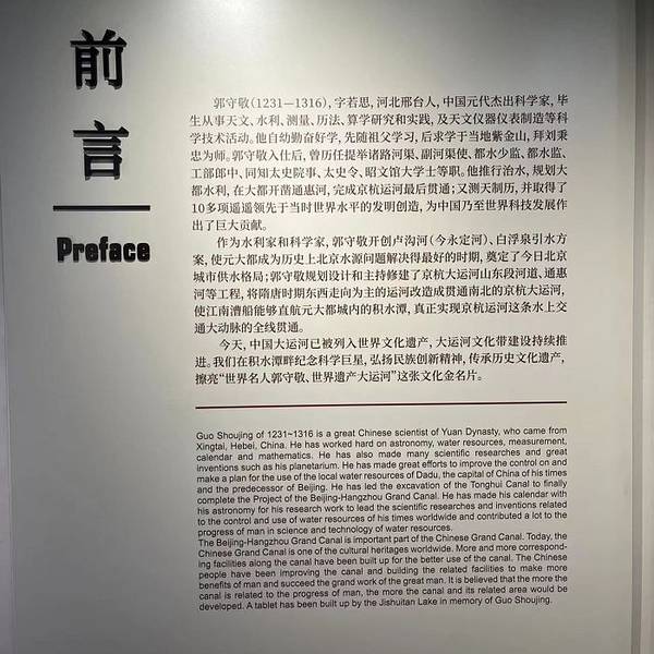 问工作人员要门...郭守敬是元朝著名的科学家,设计兴修了以通惠河为代表的一系列大型水利工程。在仪象方面,也设计出了很多仪器。并制定出了通行三百六十多年的《授时历》。给我们后人留下了很多珍贵的资料和经验。