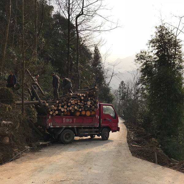 雾中山道路都是这个样子的,没风景的道路很吓人还得错车山上得人在砍树