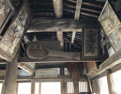 这个地方看着确实很有年代感,进去之后发现屋顶横梁已经续接过很多次,里面有一些木板画,掉色严重,已经看不出来画的是什么了,需要门票才能入内,很小,空空如也,还需要换鞋,门口看看就可以了,如果说五重塔是严岛神社买一送一的景点,那这个千叠阁就是五重塔的赠品了。