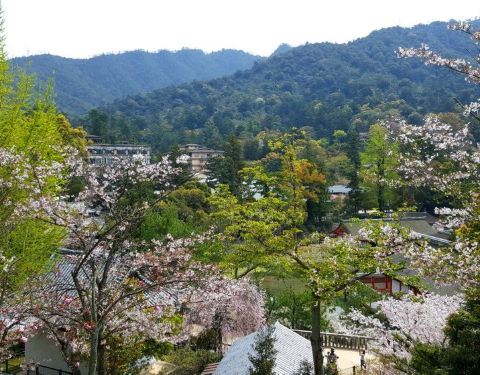 千叠阁从外观看非常朴实,就是一座巨大的木质日式庙堂。但进去后可以望见一点濑户海,衬着樱花,有种宁静致远的感觉,可以歇脚看看。