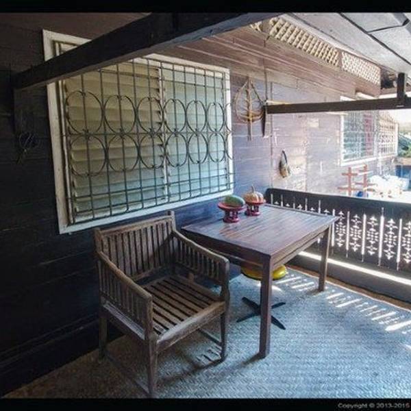 都是百年老木,受兰纳和缅甸影响,揉合了两者文化式样的建築,阳台保留缅甸味,柚木柱是支撐屋頂的主粱柱