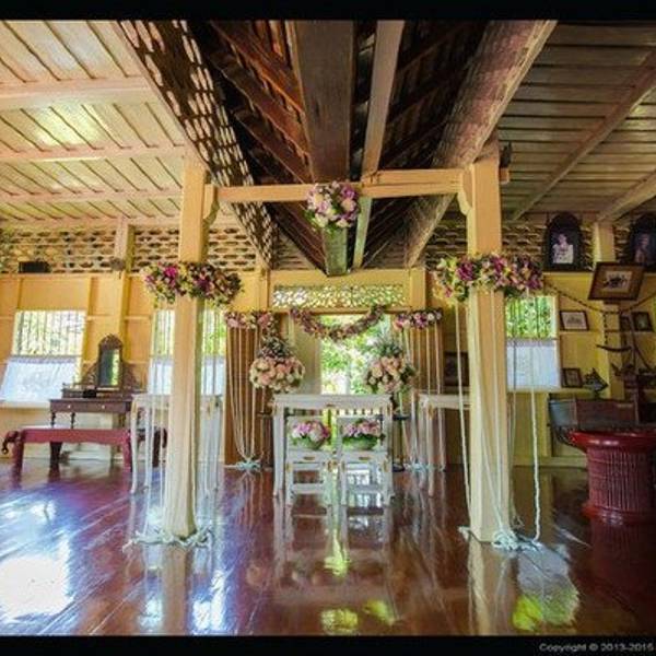 用过午餐上车继续前往下一站,古典梉木屋Baan Sao Nak 这是一座很漂亮的柚木房子,建于1895年,浓郁的兰纳风格,由116根方形柚木柱子支撑着,巧夺天工。里面展示了不少古董,银器、瓷器、泰北手工艺品等,值得前来参观一番。大草坪来到这里不得不稍微提及一下兰纳的概念,兰纳或兰纳泰(1292-1558),是泰国历史上的一个曾经控制泰北地区的王国,也是泰族最早的一个强大的政权。而这一栋建筑就是现在保留比较完整的一栋当时的建筑。虽然整个建筑的门面并不起眼,但是内部结构还是相当豪华的在游客的参考资料中被称为高脚贵族屋,但在当地人的眼中这栋建筑也被称为千窗屋,当然不是说它真的有一千扇窗子,只是和普通的民居比起来它的窗子数量的确可以达到上百扇之多,而且结构各不相同,非常的有特色。一楼都是由柚木支撑建成的底座,一来可以抵御猛兽侵袭,二来可以防潮放虫,二楼由几个房间组成,有客厅,厨房,会客室,卧房,餐厅等等组成每一个区域都有着典型的兰纳风格建筑和装饰品卧室低调而奢华二楼外厅刚好搭建了一个婚礼礼堂即使在现在看来这个内厅的装饰依旧属于豪华型看完古建筑游客可以前往一楼的休息区免费品尝一杯由老板娘亲自调制的蜂蜜冰茶,感觉还是相当可口解暑的。一楼的座位非常的阴凉,如果走累了,这里可以多休息一下,老板娘非常的好客。出了古屋后,门口的马车已经等候已久,原来这就是工作人员所说的安排好的马车,相当贴心,清脆的马蹄声在南邦的旧城里游荡显得格外亲切。