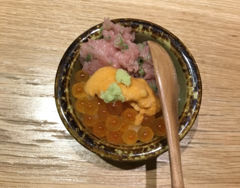 这是一家在经济条件允许的的情况下,想反复来的寿司店,而且每次来都让人激动不已。严选产地当季最时令的食材,为追求品质不计成本,饱含真诚地捏制每一贯寿司,出品无论从品质上还是品相上都无可挑剔。大将工作的时候认真严肃,但又不失风趣幽默,与客人用心地交流。