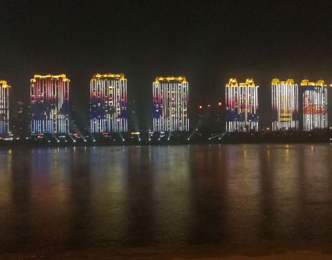 吉林市区沿着松花江的一条景观大道,道路一边是松花江,一边是美丽的建筑,夜景尤其出色。
