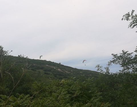 山顶上有玩滑翔伞的,一般是玩不了。下山时修的路有点意思,也可以上山时选择不陡就是绕远了