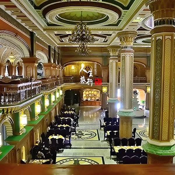 骑仕大观园与其说是来这里吃饭,倒不如说是来参观这个维族特色的建筑艺术品。 其实这里菜品相当的不好吃,价格也死贵,基本没有性价比可言。 当然如果不吃饭,也可以买60元门票参观内部。