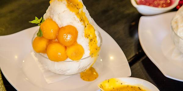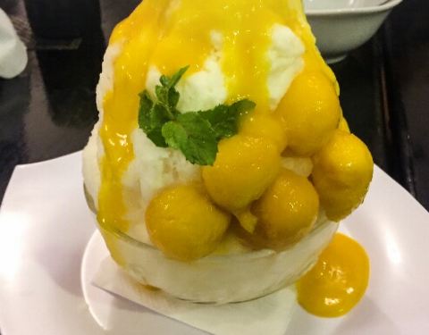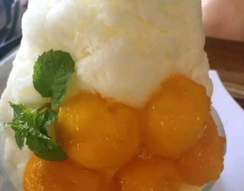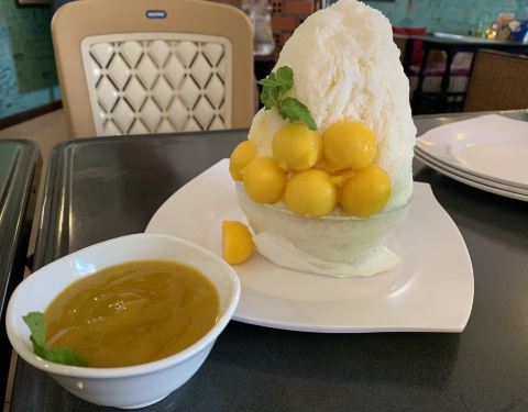 吃过午饭再来,执念啊。 芒果绵绵冰,味道很好,一个人吃有点多,不过配的芒果酱酸酸的,可以解腻