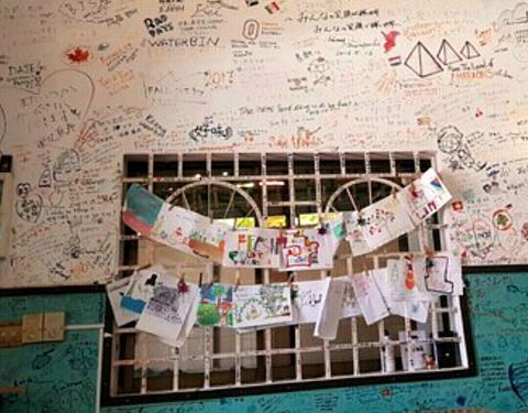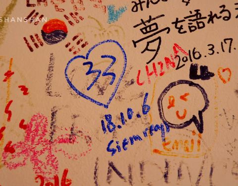 很多游客会慕名而来,走入店铺最醒目的莫过于来自世界各地旅客留下来的满墙涂鸦。 店主是一对日本夫妇,特别注重环保。店内所用的材料都是环保物料,饮品吸管是竹质。杯子底座都有循环再生的印记。绵绵冰是最受欢迎的甜品,绵软细腻,中间部分有炼乳。