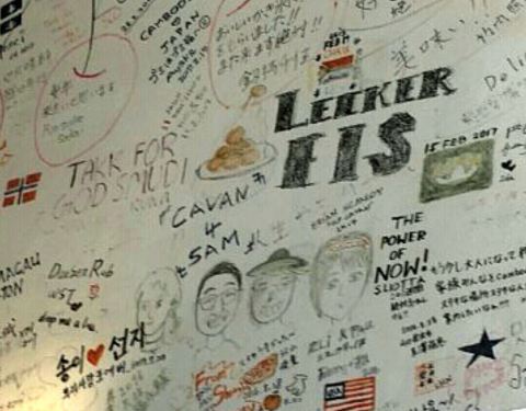 点了一个Mango Ice-cream Mountain with passion fruit,白白的底是香草冰淇淋刨冰,淋上百香果酱真的又好看又好吃。老板是一对热情好客的日本夫妻,非常擅经营,店里的墙上都是游客的留言。