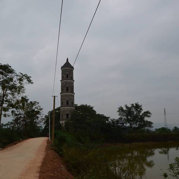 始建于清朝道光初年。塔高43.44米,共五层,从二层起,分别名为珠连、璧合、梯云、取月,配有苍龙布水、彩凤独立、瑞鹿含芝、金鲤朝龙壁画。蓉峰塔塔顶为尖嘴葫芦状,瓦檐六角各垂吊一个风铃。塔侧有一古榕,绿色枝叶拦腰拥抱古塔,形成树抱塔的奇观。塔东侧有一小湖,周围是满眼的田园风光。