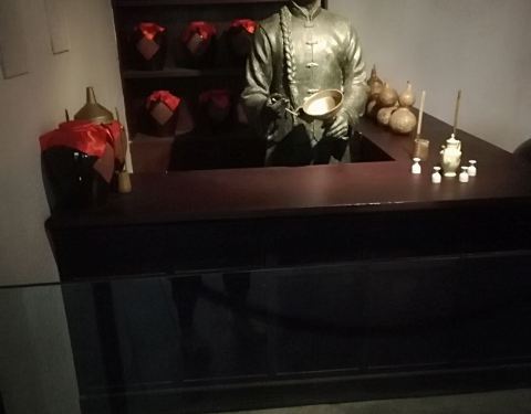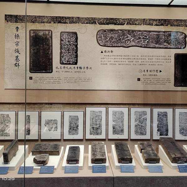 亳州博物馆距离亳州火车站很近,始建于1958年。亳州当地不少古迹出土的文物都收藏在博物馆内,很多游客可能对亳州并不了解,而亳州博物馆正是了解亳州历史和现在的好去处。亳州博物馆外形仿汉代建筑,门口竖着商汤、曹操、华佗等和亳州相关的名人雕像。进入博物馆,里面有两层,二层为临时展厅,一层为主展馆。一般游客参观的都是一层主题为《穿越五千年——亳州文化寻源》的常规展览,展品按照史前文明到近现代的时间顺序排列。序厅就是个大厅,有一大块“亳”字的甲骨文模型。馆内的涡河文明展厅,讲的是亳州的母亲河涡河流域发现的史前文明。商汤都亳展厅,介绍的是商朝创建者汤王在亳州建都。道源圣地展厅,介绍的是老子、庄子、陈抟老祖都是亳州人。由于这些历史过于遥远,展现的实物都是一些瓶瓶罐罐、石头碎片、质朴的玉件,还有亳州当地景点汤王陵、下属蒙城县庄子祠等出土的文物,都比较朴素。汉魏风骨展厅,值得一看,“典藏精品”都在这。亳州是曹操的故乡,这个展厅主要展出曹操家族墓出土的文物。有银缕玉衣,和田玉做的汉八刀玉猪,和近现代俄罗斯猪模样接近的铜猪,一对长宽1厘米、高不到3厘米却刻着纤细文字的玉刚卯等价值连城的文物。天下望州展厅,介绍亳州地处交通要道,唐代为“十望州”之一。第六展厅——亳商市井,介绍亳州在北宋至明清商贸繁华。展出的瓷器上有了鲜艳的色彩,铜镜都很精美,金器有镂空的花纹,第六展厅还布置了一小段明清老街,两侧都是商铺,一般游客可能会觉得唐宋开始展厅及陈列的物品挺好看的。近代当代亳州展厅,介绍亳州近代抗日战争历史,陈列当时的纸币、身份证等,还有亳州当地的剪纸、曲艺、亳州人华佗发明的五禽戏等传统文化,以及现代亳州知名的产业古井酒、中材料、汽车工业和采煤业。
