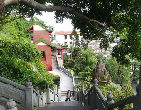 在鸿山公园旁边的寺庙,这寺庙靠路边的有卖一些纪念品,从公园可以登到上面看看在鸿山公园旁边的寺庙,这寺庙靠路边的有卖一些纪念品,从公园可以登到上面看看。该寺庙是明朝始建的,此处据说是厦门八景之一——鸿山织雨所在地,靠近华侨博物馆,距离厦大南普陀一公里多。