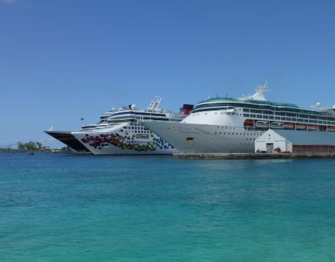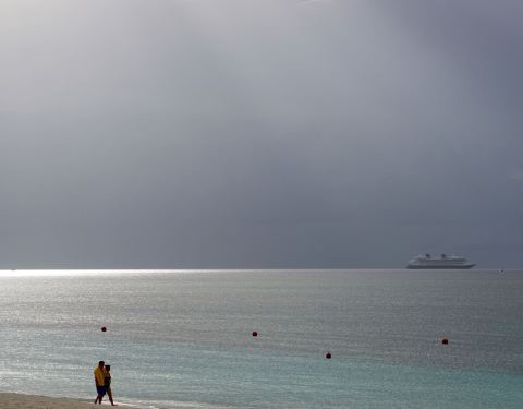 在junkanoo海滩逛荡,是巴哈马主要的港口,很多游轮停泊在这里,沿着沙滩上可以看到很多人在游玩