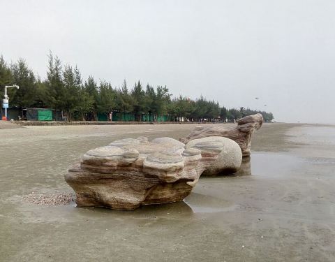 江山半岛位于防城港市的北部湾畔,这里也是北部湾沿海景点集中的区域之一,海岸线绵长,沿岸分布有乱石穿空的怪石滩、沙黑浪白的白浪滩(大坪坡)、沙软水清的月亮湾景区、幽静平缓的白沙滩、抗美援越时期的胡志明小道遗址以及有“龟蛇守水口”之称的白龙炮台等众多旅游景点。 游玩江山半岛大多数游客会安排一天左右,一般从月亮湾景区开始沿着海岸线向西南方向走着,将沿途的各色沙滩都看遍,海岸线中部的白浪滩是几处海滩中具人气的地方,可下水游泳,或租个太阳伞静静享受海边时光,而且这里的沙质因钛含量较高,呈现黑棕色,且海边时不时有白浪滚滚而来,黑白凸显,十分有特色。走到海岸线的西南尽头便是怪石滩,这里怪石嶙峋,且呈红褐色,所以有“海上赤壁”之称,许多人都会来这里拍照。