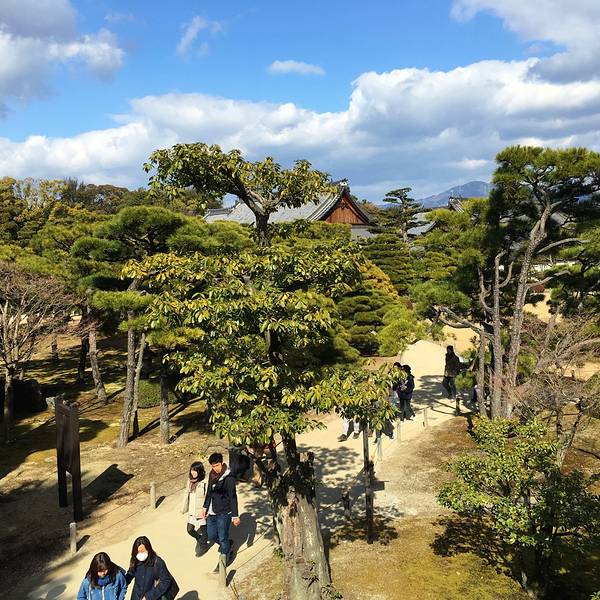 二之丸庭院,在二条城城廓与本丸御殿护城河之间,是表现传说中神仙的居处蓬莱仙境的一个花园。修剪的相当的精致的一个庭院,里面水池、小岛,还有枯山水石。春天的时候,这里是赏樱的圣地。