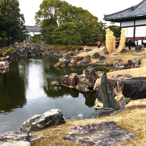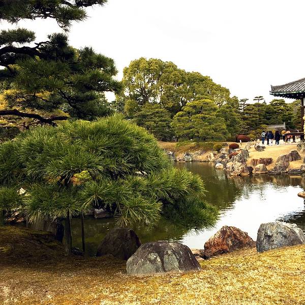 二条城内的最精致的一处庭院!二の丸庭园位于二条城内部,所以要到达二の丸庭园,必须要先到达二条城。二条城位于京都的中心位于,所以交通非常便利,乘坐公交或者地铁到二条城前站,再步行几分钟即可到达二条城。二の丸庭园的门票已经包含在二条城的600日圆里面,所以进入了二条城以后,就不用再另外购买门票进入二の丸庭园。二条城的面积比较大,进入大门后,要过了免费休息室和二の丸御殿才能到达庭院,庭院比较靠近二の丸御殿的白书院。庭院的入口处先会看到两个大鼎,虽然鼎不及国内的雄伟,但是做功还是挺精致的。庭院主要是围绕着一个大池塘,池塘的周边会有石头和树木,旁边就是御殿的建筑物,给人感觉有点像苏州庭院,但也带有日本的风味。过了庭院之后便是二条城的花园和一间休息茶寮,如果累了可以进去喝杯抹茶噢!二の丸庭园可以让你了解更多日式庭院的设计,值得一游噢!