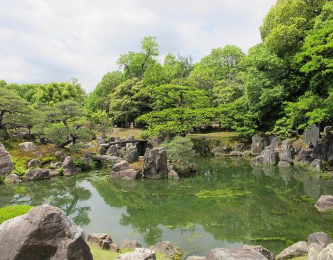 二之丸庭院位于二条城内,可以说是城中的一处花园,水池是其重要的一个布景。水池的周围配有天然的岩石和小瀑布,是典型的池泉回游式庭院。庭院里也有一处天守阁,是二条城的制高点,在上面可以俯瞰整个二条城非...