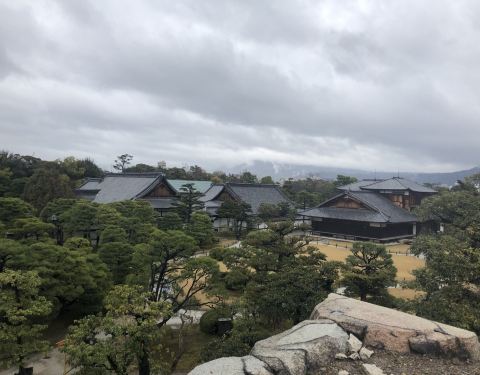 在二条城内的一个庭园,圆林修剪得很漂亮。里面的景观都很简洁,让人感觉就很讲究,很艺术。 属于二条城的内城,还能上内城的城墙上看到整个城的风光,确实挺美的。