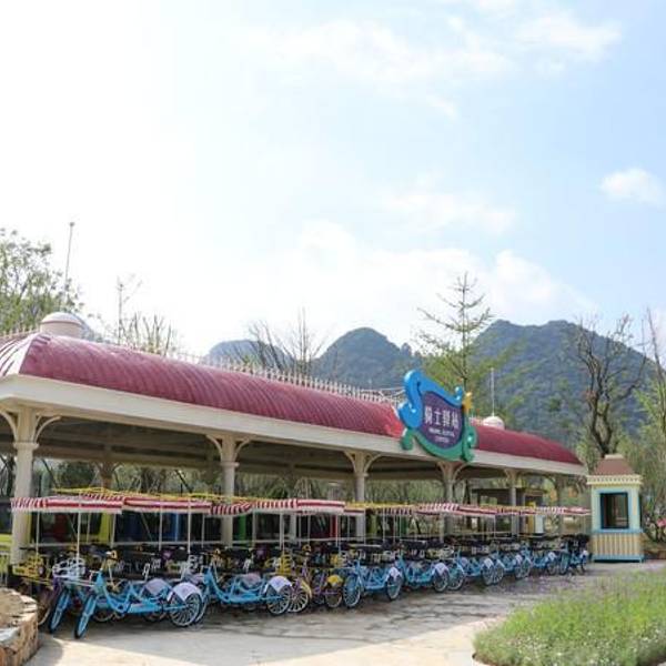 当然,云漫湖作为一个难得一见的家庭度假型景区,依托高峰山、马岭河流域构建了以湿地、湖泊、山川、草原等自然资源的整合,根据景区已有资源特色规划了游乐设施、康养环境、体育健身设备、休闲度假等五个主题区域的全方位景区。园区地图进景区后首先就是选择景区代步工具,园区有三个骑士驿站以供选择上图为小火车,适合70岁以上老年人以及1.2米以下小朋友乘坐。小火车将绕园一圈。上图为观光电瓶车,有两座以及四座为不同需求游客提供上图为观光自行车,适合喜欢慢游的游客。进入景区的第一个奇妙岛区域,这里是一个湿地公园,骑着自行车躲着酷暑慢慢悠悠的在园区游玩在夏日其实也还是蛮浪漫的一个选择。这个地方叫做飞鱼奇谭,水温全年恒温完全不用担心会热。抓到的鱼还可以选择任意四条带走。自己体验抓鱼的乐趣而且不用面对一条都抓不到的忧伤,还是挺棒的。哈哈飞鱼奇谭不是都说自古红绿出官配嘛,一路大片美国进口的红枫林,加上树下各色的花形成的一片小花海。风景还是对得起观众的。整个景区都被打造出一种异国风情,不管是园区的广阔大草坪还是各式的童趣造型都特别的吸引小朋友的眼球。关键是,拍照发朋友圈显得各种高端大气上档次啊。无图无真相,马上上图。还有一个根据《飞屋环游记》打造的树屋,分为两部分,楼上适合小情侣啊夫妻阿拍照游玩,下面是一些攀爬设备,家长带小朋友来也不怕小朋友成为一百瓦的电灯泡了。奇妙岛的好玩好看的景点自然不仅仅是这些了,总是要保留点悬念让园区的应龙传说、奇妙码头、石艺部落等各种来带给你惊喜嘛。石艺部落局景然后就到了我们的彩虹园了。彩虹园最大特色就是动力设备区了,各种刺激的、好玩的游乐设备,有让你锻炼勇气的飓风飞椅、有刺激的卡丁车、也有梦幻的飞翔木马等包括在门票中的14个游乐项目。图为飓风飞椅更大的惊喜就是今夏开启的水上嘉年华,夏天就是要玩水嘛。带着家人朋友孩子换上泳衣在泳池中畅快的嬉戏玩耍。当然,怕晒得小仙女一定要抹上厚厚的防晒霜。如果你带来的小朋友实在太小那就去我们的风之谷吧。这里有1.2米以下小朋友的玩乐天堂——童乐星球;这里也有我们的星空露营地,带上家人朋友在美丽云漫湖旁驻营扎“帐”,仰望星空;这里还有我们的岩石公园,奇特的喀斯特地形与花海的结合无一不在向你发出要约。冒险林作为二期主要项目,在未来,将会建设成能够进行真人cs、山地摩托车等的独特区域。