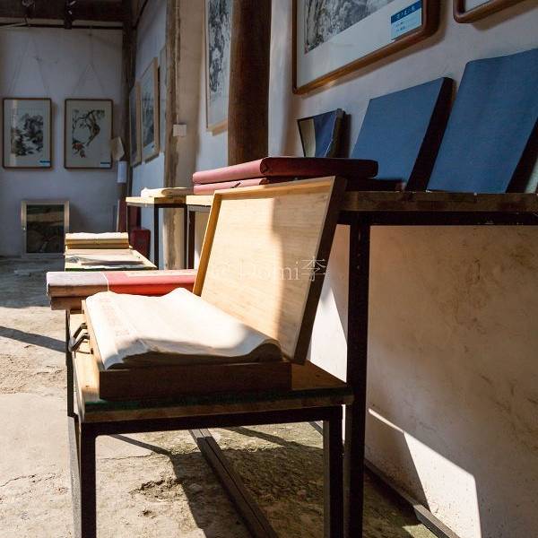 龙门墨庄,传承了千年手工制墨文化。 墨和我们的关系,曾经如此亲密,习以为常的就想家里的一份子。因为有墨,曾经写出来的字带着一阵清香,且饱含写字者的性格与品位,就像生活中许多与之相处的其他东西,如今可能丢弃一旁,以至于忘记了他的存在。但真正丢掉的,并非那些东西,而是对生活的耐心和细致。但我在这里回忆起,儿时曾为写出一个漂亮的毛笔字而激动不已的心情,也真正的体验了一把手工制墨,试墨以及墨雕。那些看似简单的事情每一道程序都需极细的耐心。吃茶,写字,便是曾经最为寻常的存在。在这个躁动的社会生活久了,能够寻得此处散心也是极其的美妙的享受。 木版水印技艺我国印刷术始于隋朝,完善于宋,明至巅峰。木版水印技艺是我国珍贵的非物质文化遗产,是集绘、刻、印高度结合的产物,华宝斋传统造纸印刷文化村将此技艺作为文化旅游项目进行活态传承。 “木版水印”,专业学名“古代彩色版画印刷术”,是对中国书画精品进行的高仿真复制的传统工艺。木版水印是指在木质的雕版上用水质的墨和色才印刷。墨汁和水性颜料渗入宣纸,在柔和的纤维中舒展开来,根据水墨渗透原理显示笔触墨韵,附带着水性的温润气息。因为印刷所用的纸张、墨色、印泥等都与中国画无异,保留了中国画干湿浓淡的渗化效果,这是水印画远胜于其他油墨印刷品之处。