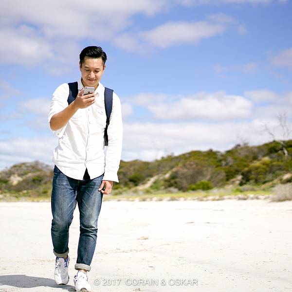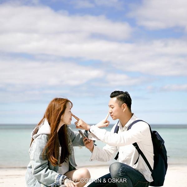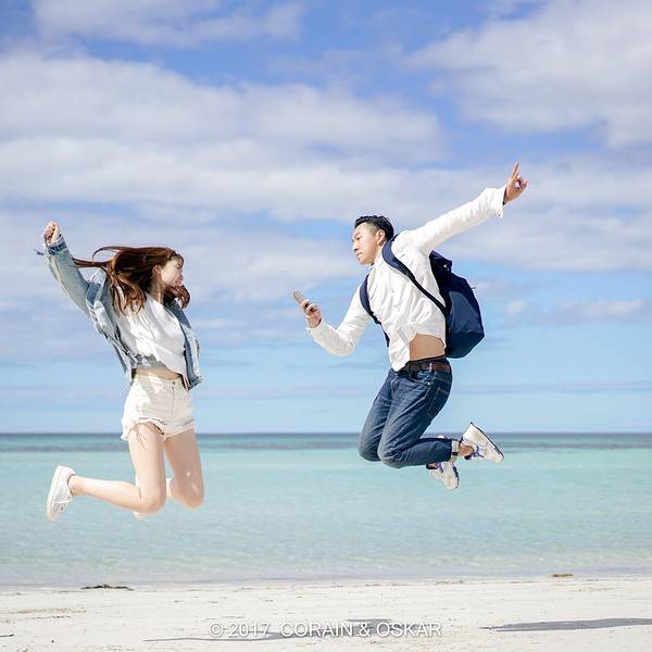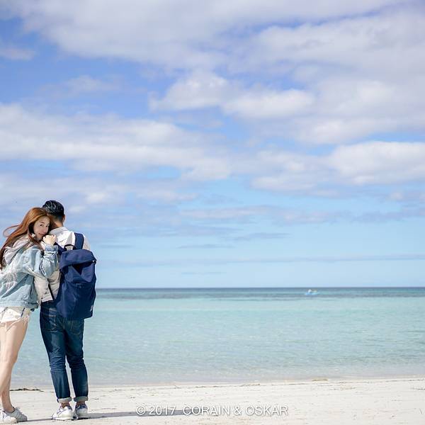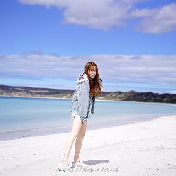 终于到达emu bay了,这个海湾其实有个很棒的卖点就是可以驾车到沙滩上。在广告上经常可以看到的画面,在这里你可以如愿以偿。载着自己爱的人,拉开车窗,听着音乐驾车驰骋在沙滩上。不过,这里我的画面需要停播一下,哈哈。如果你是一部前驱车,而不是一部四驱车型。那么就还是放弃吧,因为车子会陷入在沙滩中。我们还好是有当地的居民善意提醒,两个人只能拿着三角架去自拍啦。整个EMU BAY的风浪不大,给人一种安静的感觉,而这里又被我们2个包场了,整片海湾都没有人天气开始放晴,我终于可以换上热裤了......虽然还是一堆夏天衣服没有用武之处。但是能有机会换上,一定马上换上,这样不枉我上海冬天大老远的来感受夏季啊~~~因为离晚上看鹈鹕表演的时间感觉还比较充裕,所以两个人慢慢玩起了自拍。没有想到一玩自拍,时间如流水啊........差点是飚车回去的。这点不提倡阿,因为傍晚回去袋鼠真的是很多,如果撞到它们也太可怜了。真希望时间停止,我们能那么一直那么年轻的牵手旅行下去。照片见证的是我们的曾经的美好,哪怕老了我们也一起自拍,可好?