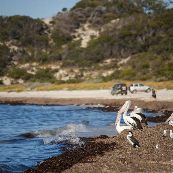 鹈鹕湾(Emu Bay),一个可以把车开上沙滩的 Bay 到后来,似乎看到接连不断的 Bay,只要路看上去好一点,我就会不假思索的开去,谁让我还有大把时间。 这儿最诱人的无疑是海滨优质风景,还有那条可以开上沙滩的公路,这儿的人很少,除了水边那一群大鸟,你还能在某个草丛后,看到正在晒太阳的当地女孩,自然是穿的很少的那种。 人少,让人们有更多的机会去亲近大海!似乎在袋鼠岛上,哪儿都不会缺少个 Bay。
