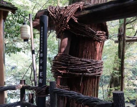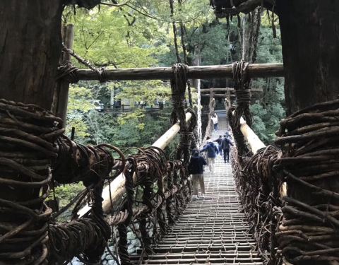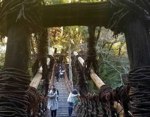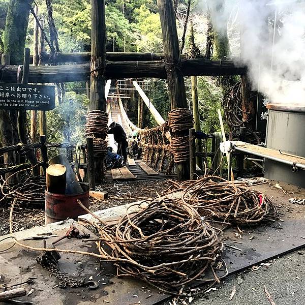 舒舒服服泡完温泉,然后去看有名的祖谷葛藤桥。▲只能从侧面来和桥一个合影啦舒舒服服泡完温泉,然后去看有名的祖谷葛藤桥。这秘境深处的葛藤桥,说起来还有一段故事。据说平安时代,平氏一家在【源平之战】中战败给了源氏,逃之此地,为了避免源氏家族的追击,遂造了葛藤桥,万一敌人追进...舒舒服服泡完温泉,然后去看有名的祖谷葛藤桥。这秘境深处的葛藤桥,说起来还有一段故事。据说平安时代,平氏一家在【源平之战】中战败给了源氏,逃之此地,为了避免源氏家族的追击,遂造了葛藤桥,万一敌人追进,可以砍断桥或者烧毁桥来逃命。由于桥年代历史久远,而且现在每年有超过30万的游客来到这里,所以桥每3年需要维护一次。超不幸,上一次在2015年,这次2018年就被我赶上了。无法走上桥亲身体验一下晃晃悠悠的感觉,据说每一步都步履蹒跚,步步惊心,所以,这是不是【大步危】的得名呢?哈哈。纯属胡猜的。▲葛藤桥在维护,似乎是烟熏一下藤蔓的枝条。▲只能从侧面来和桥一个合影啦。 展开
