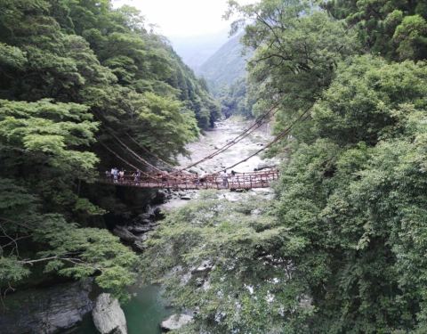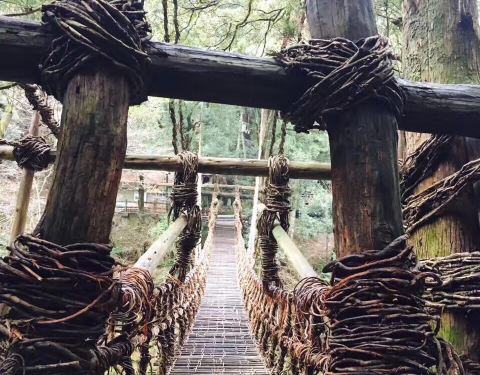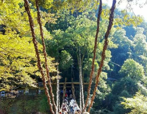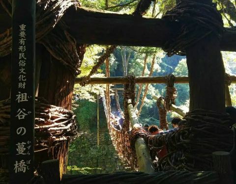 踏上去就会吱嘎吱嘎摇晃的吊桥充满惊险和刺激作为日本三大奇桥之一广为人知的“祖谷葛藤桥”由5吨重的葛藤建造而成,每3年重建一次。踏上去就会吱嘎吱嘎摇晃的吊桥充满惊险和刺激。(长45米、宽2米、距离水面14米、国指定重要有形民俗文化财)