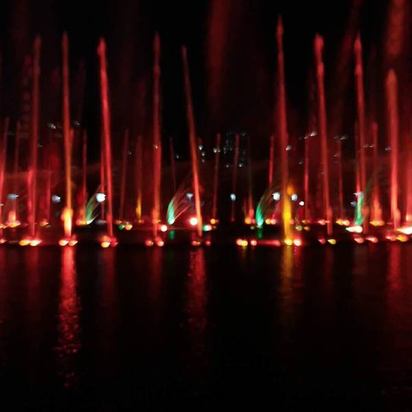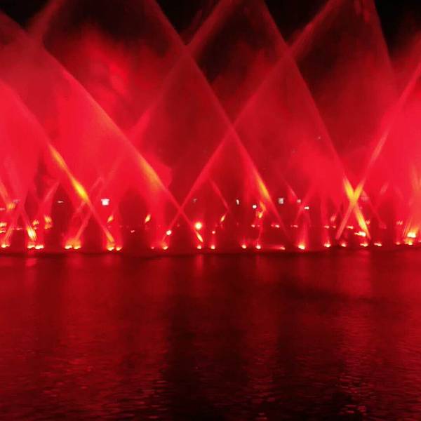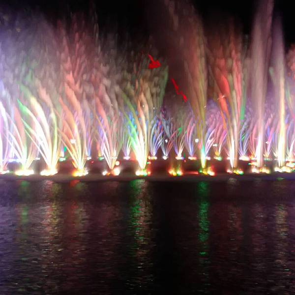 2)夜晚7点时,音乐喷泉表演开始。观看时,不要离喷泉太近,容易被飞溅的水花弄湿。