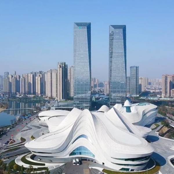 梅溪湖国际文化艺术中心位于长沙湘江新区,为扎哈·哈迪德设计作品。剧院含1800座主演出厅、500座多功能小剧场;艺术馆有9个展厅,面积1万平方米。