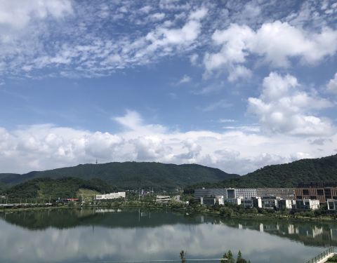 风景很好,附近酒店也很多,旁边有两个商场,一个览秀一个步步高,离地铁站步行一公里不到,也算是比较近的了。春夏风景都很好,夏天和朋友绕着湖一起划一下滑板之类的,很舒服,就是蚊子有点多,因为植物很多嘛