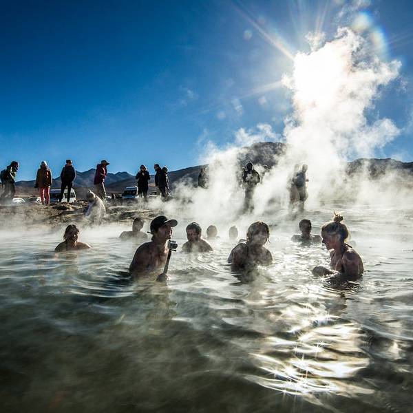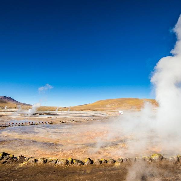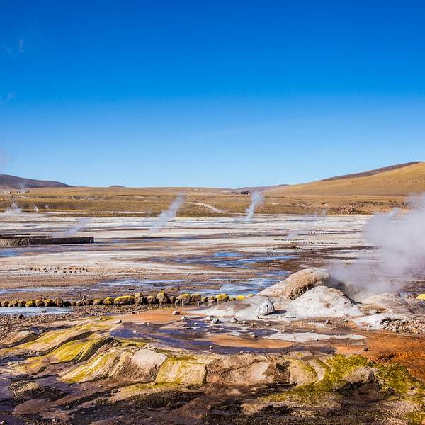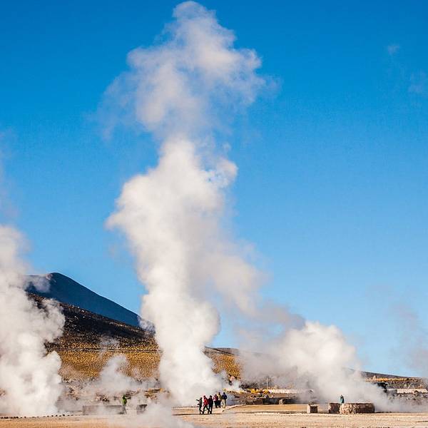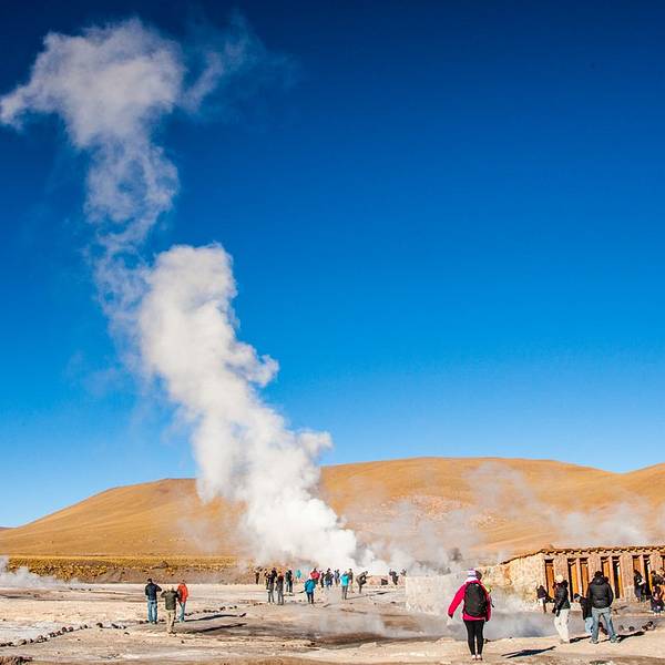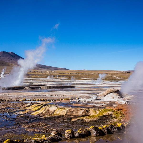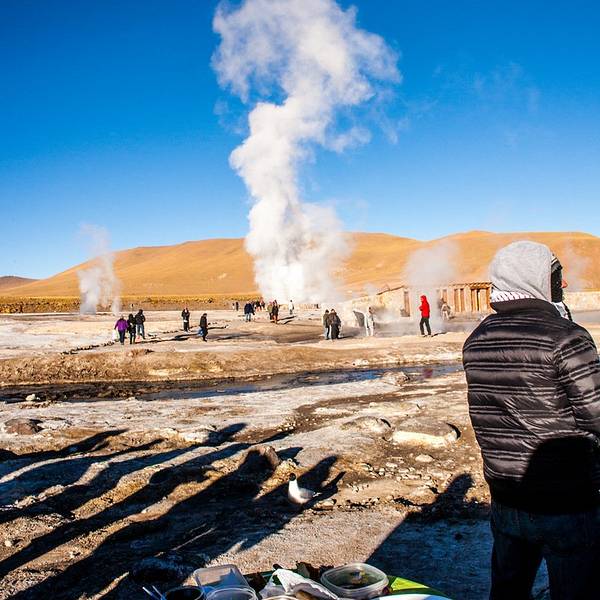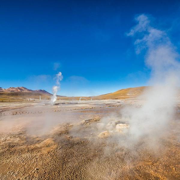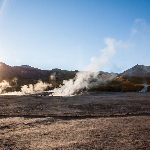 著名的间歇喷泉,一条接一条不断腾起的白色长龙,只有在太阳升起前的这段时间,间歇泉才会到达自己喷发的旺盛期,走进间歇泉(EI Tatio Geysers)你甚至感觉自己被这团团白色水雾包围了,周遭是数不清的泉眼,每个泉眼都会对应一条腾起的白色水龙,除了高处不胜寒的冷,这里更像是仙境。